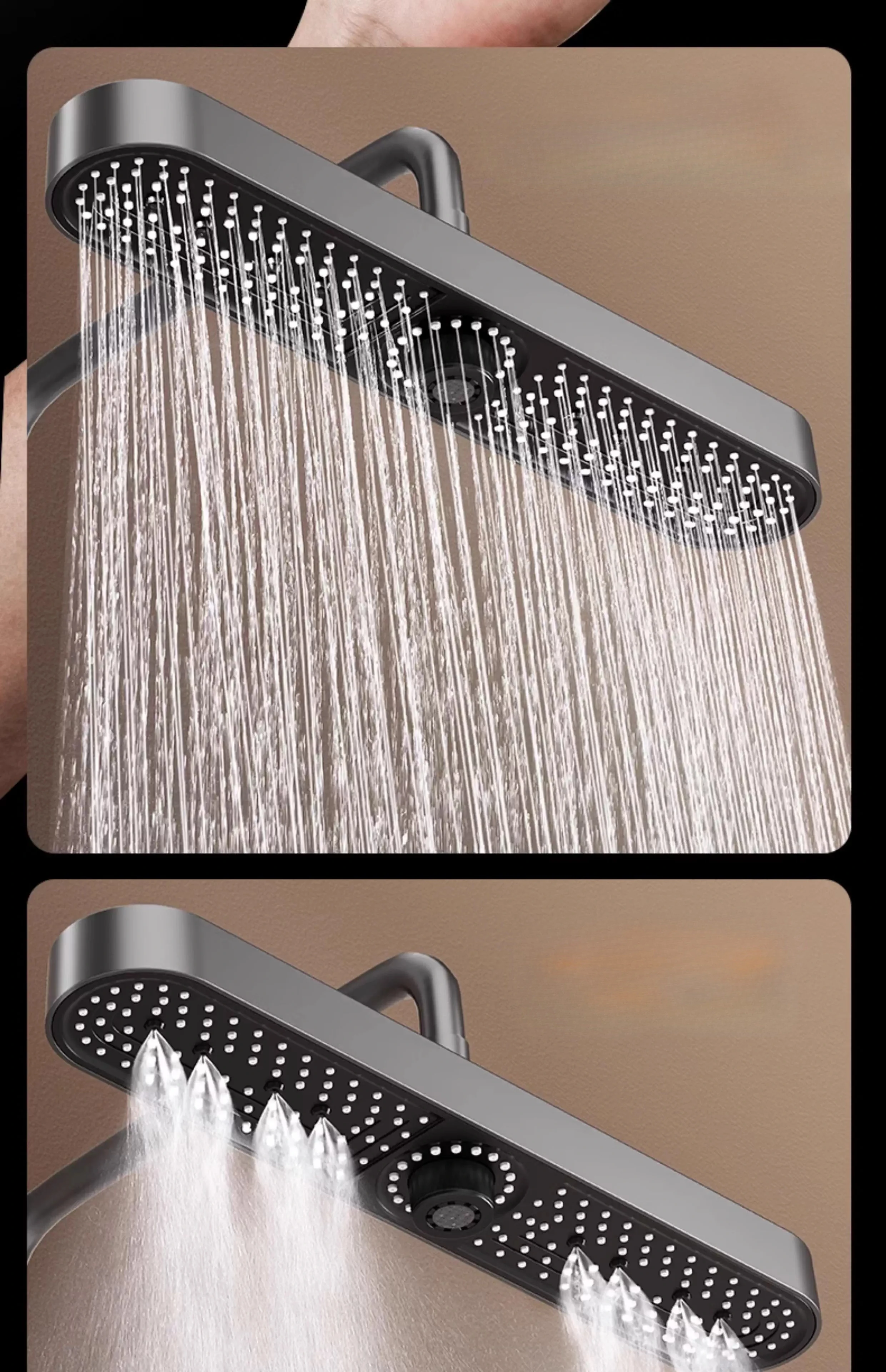 480mm Top Rain Showerhead 3 Mode Adujustable Supercharge Rainfall Spray High Pressure Shower Head Bathroom Accessories