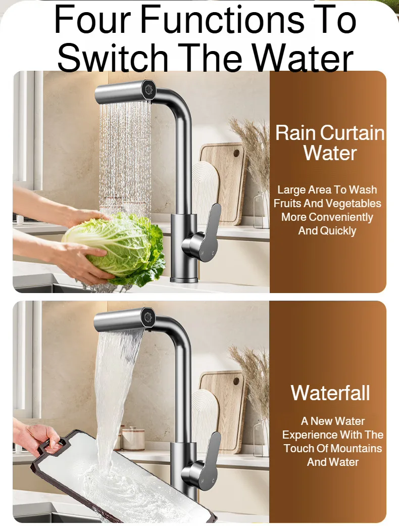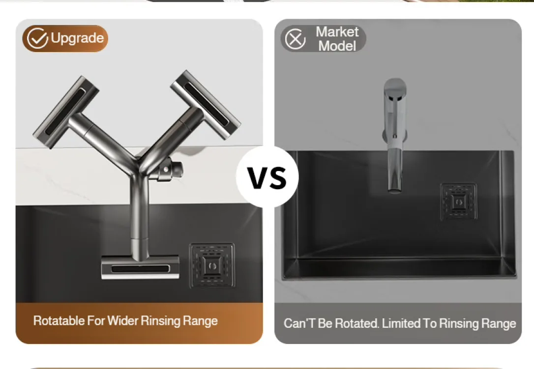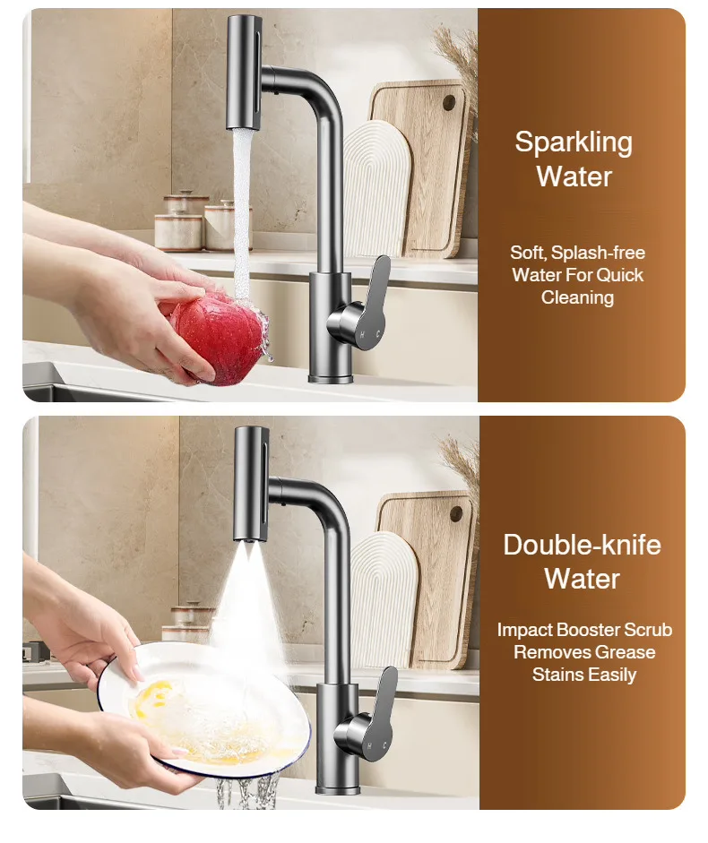 💧 Flying Rain Spray: A gentle, aerated spray that cleans vegetables and delicate tableware without splashing.