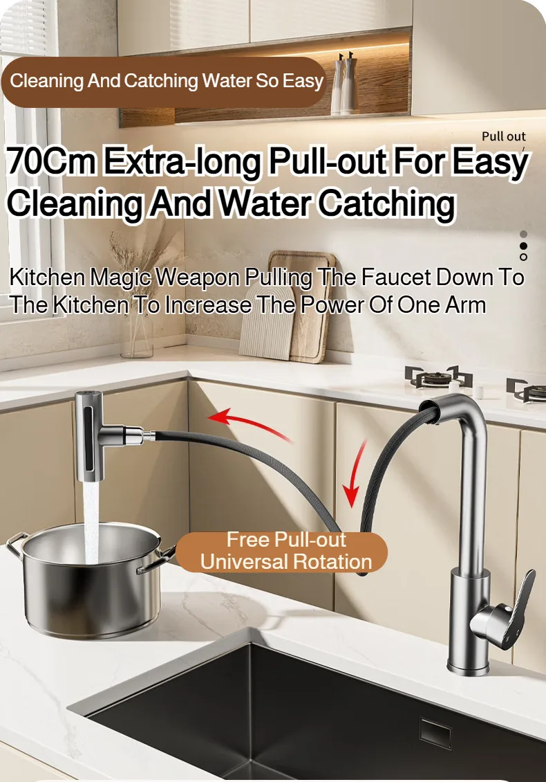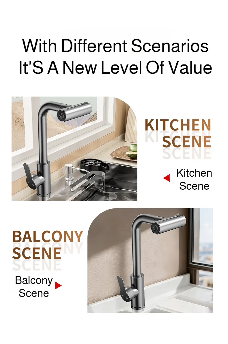 Kitchen Pull-out Faucet Four-setting Hot and Cold Sink Faucet Telescopic Waterfall Faucet Splash-proof for Various Countertops