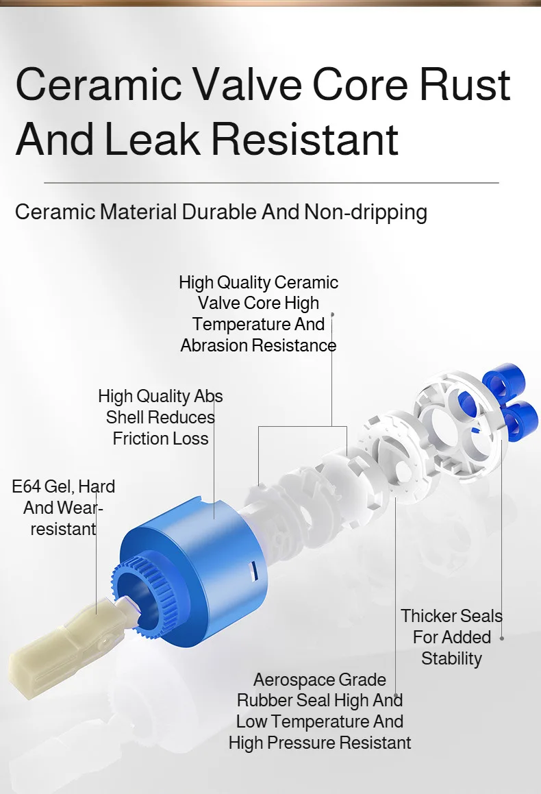 Valve: Ceramic disc cartridge for smooth, drip-free hot/cold water control and long life.